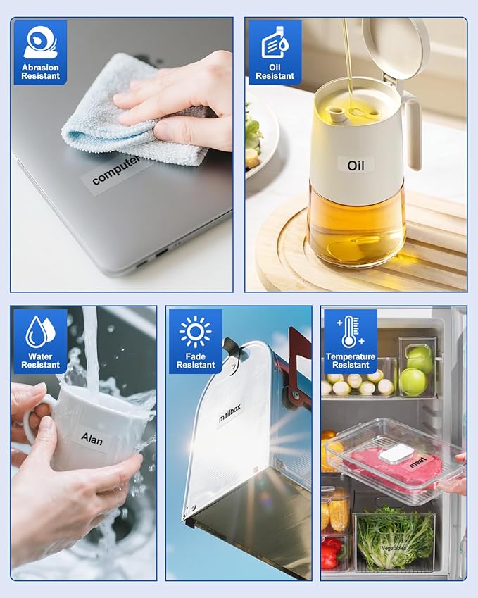 - Features: Our 24mm 0.94" black on clear label maker tape split design makes the label tape easy to peel and apply, with strong adhesion/waterproof/temperature/oil/abrasion/fading, and reliably sticking to various surfaces