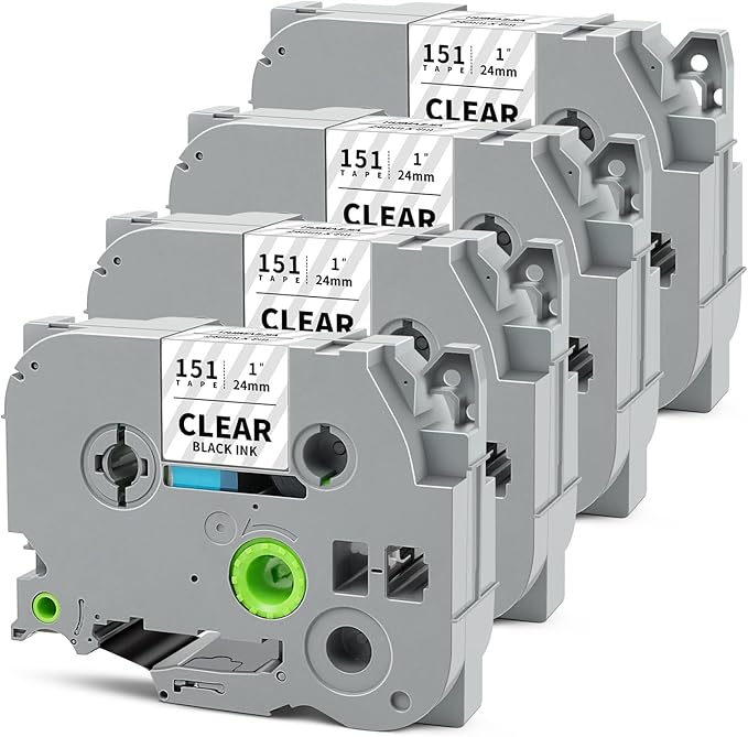 - Packages: 4-Pack 24mm 0.94" clear label tape compatible with Brother tze-151 24mm 0.94 black on clear tape. Color: Black on Clear. Size: 1 inch (24mm 0.94") x 26.2 feet (8m)