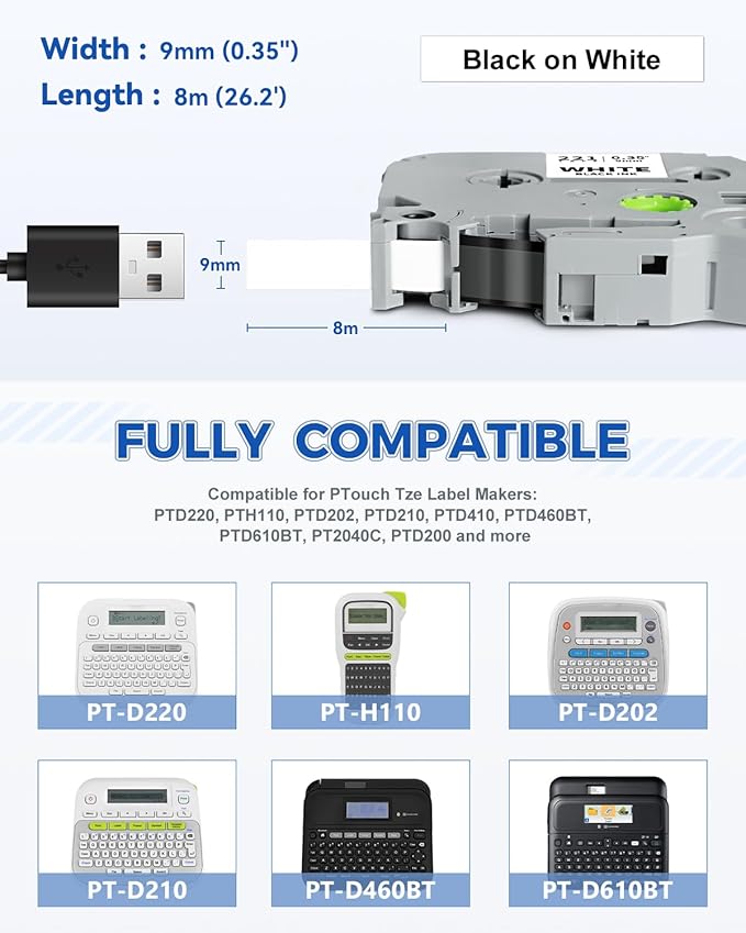 - Compatible for Brother Tze 6mm Label Maker: PTH110, PTD220, PTD410, PTD460, PTD410VP, PTD610BT, PTD610BTVP, PTD200, GL100, PTD201, PTD202, PTD210, PTD215e, PTE100, PTE105, PTE110, PTH100, PTH105, PTH111, PTH200, PTP300BT, PTD400, PTD450, PTE300, PTH300, PTD600, PTE500, PTE550W, PTH500, PTP700, PTP710BT, PTP715eBT, PTP750W, PTD800W, PTE800W, PTP900, PTP900W, PTP950NW, PTP910BT