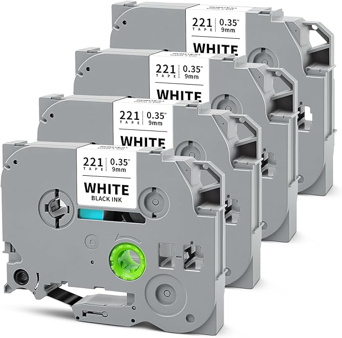 - Packages: 4-Pack 9mm 0.35" white label tape compatible with Brother tze-221 tze221 tz-221 9mm 3/8" black on white label maker tape. Color: Black on white. Size: 3/8 inch (9mm 0.35") x 26.2 feet (8m)