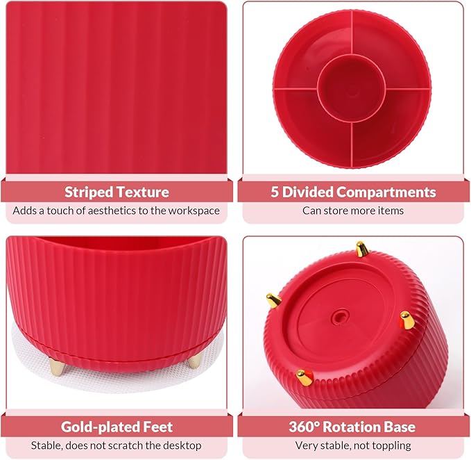- Space-Saving: The design of 5 compartments provides enough storage capacity without taking up a lot of desktop space. This 5*3.8 inch desk organizer can be placed anywhere in the office, vanity, bathroom, bedroom, and living room