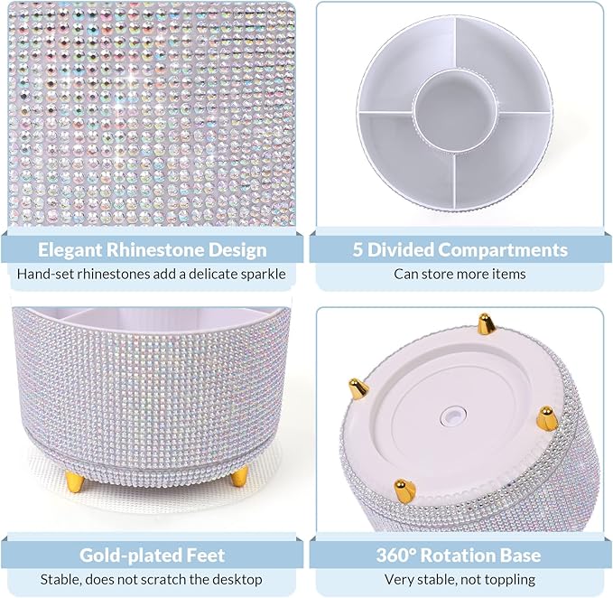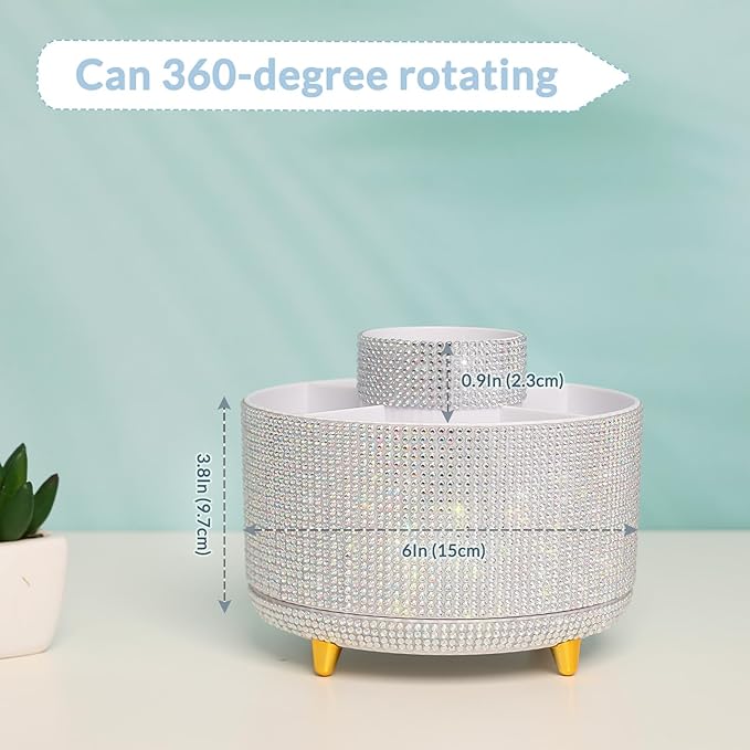 SKYDUE 360 Degree Rotating Desk Organizer, Shining Dual-Purpose Rhinestone Pencil Pen Holder, Rotating Desk Pen Organizer with 5 Slots, Rhinestone Pencil Cup for Office, School, Home