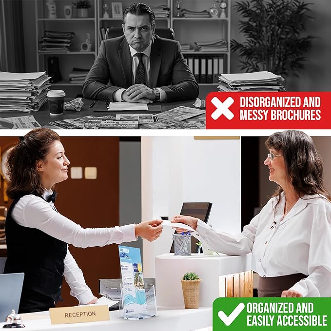 - ✔️ ORGANIZED STORAGE FOR TRIFOLD DOCUMENTS: Designed to securely hold 8.5” x 11” trifold brochures, this holder keeps printed documents upright and easy to access. Suitable for organizing service menus, visitor information, or promotional handouts on flat surfaces.