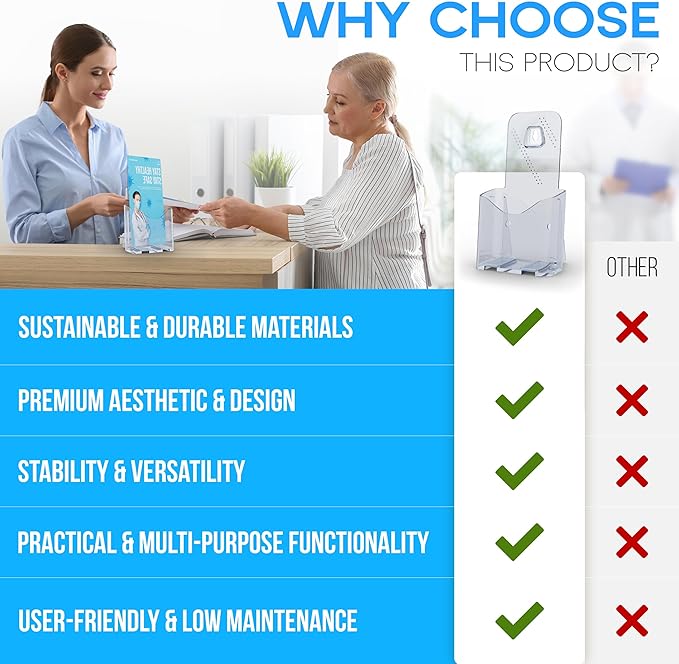- ✔️ DESIGNED FOR A RELIABLE & STRESS-FREE EXPERIENCE: Crafted for consistent use in busy environments like clinics, offices, or service counters. This brochure holder offers a steady and organized way to present printed materials clearly and efficiently.