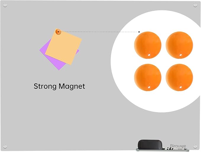 - Frameless Tempered Glass Design: Our glass whiteboard features a sleek frameless design that maximizes the writing area, allowing for unrestricted creativity. With a size of 48 * 36 inches, the smooth tempered glass surface ensures effortless writing, easy wiping, and no dust accumulation.