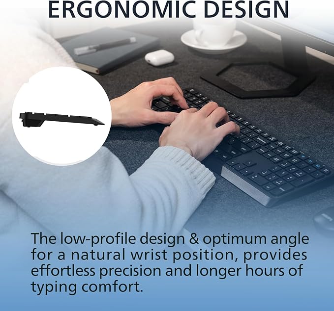 - 【Ergonomic Comfortable】- Features a non-slip stable typing base with an optimal tilt angle and contoured keycaps to promote natural wrist positioning.You can accurately complete typing tasks based on muscle memory without looking down for characters.Universal Compatibility Keyboards Works flawlessly with Windows/macOS/iOS/Android devices in office or hybrid work setups.