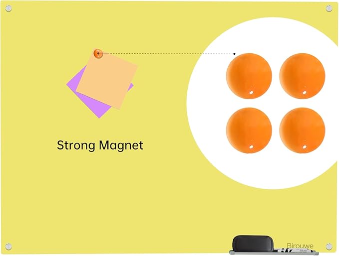 Magnetic Glass Dry Erase Board - White Board 48 x 36 Inch Wall Mounted Glass Whiteboard, Large Frameless Glass White Board for Wall Office, Home & School, Yellow
