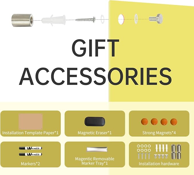 - Easy to Install: Glass Whiteboard Magnetic Dry Erase White Board is easy to install. Through the assembly instructions provided by us, you can easily install the whiteboard vertically or horizontally on the wall.