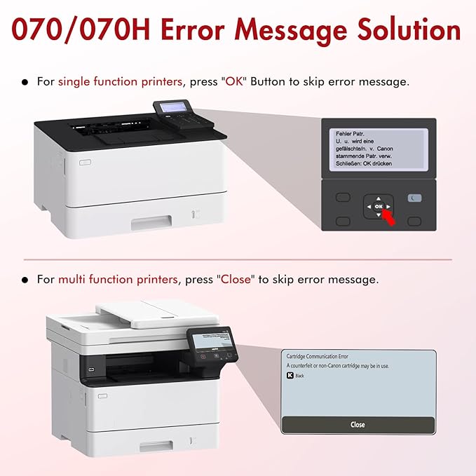 - Page Yield: Up to 3,000 pages for each 070 toner cartridge(Letter/A4, at 5% coverage)
