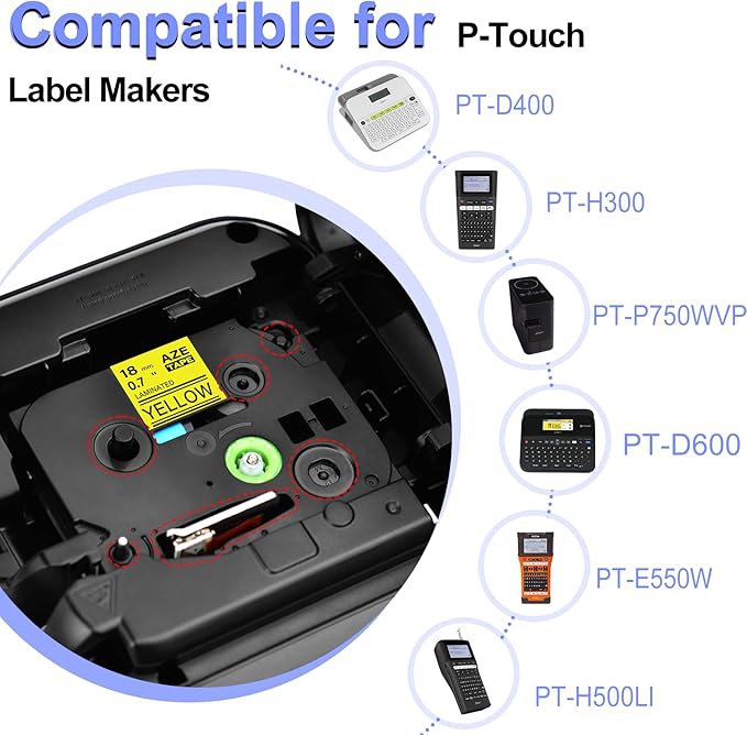 - Package Included: 2 pack KCMYTONER compatible for ptouch TZe-641 TZ-641 AZe-641 laminated label maker tape. Color: black print on yellow; width: 18mm (0.7 inch), length: 8m (26.2ft) each.