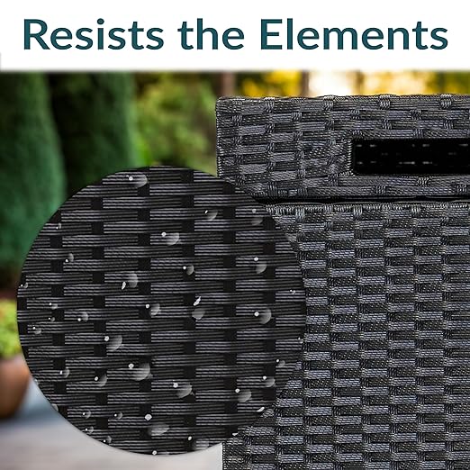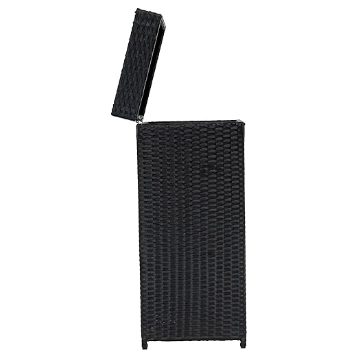- DURABLE AND STYLISH DESIGN: These garbage containers are made of polypropylene plastic to resist the outdoor elements. Each patio trash can features a sturdy, powder-coated, steel tube frame for lasting strength. It features a stylish black wicker design to complement any decor.