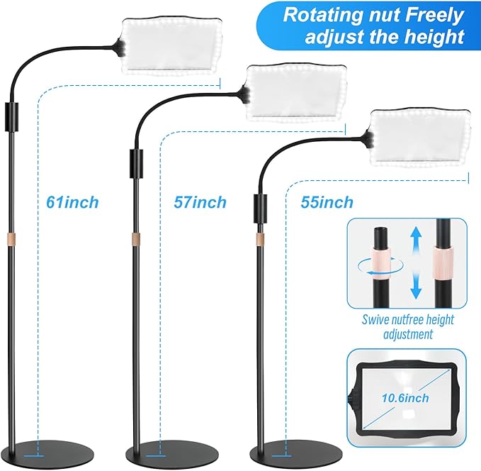 - 【Caring for Eye Health】The floor-standing magnifying glass with light is an ideal tool for people with poor eyesight. It is practical and considerate. This magnifying glass is also a perfect gift for parents, elders or friends who love reading and handicrafts. It effectively helps them read medicine labels, newspapers and books easily, improves their independence and quality of life, and conveys your care and consideration. The soft and even light is beneficial to our eye health. Our team provides 24-hour after-sales help. If you have any questions, please contact us.