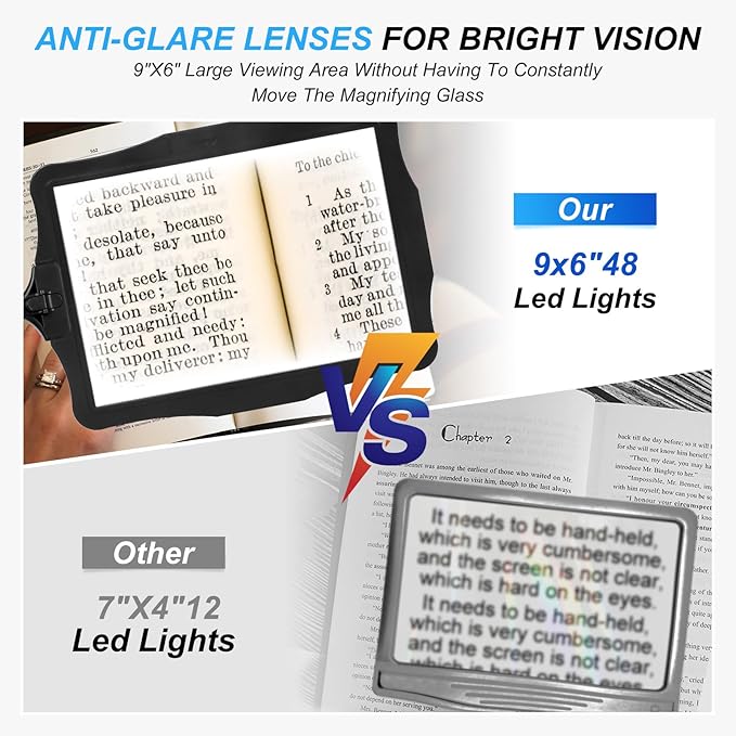 - 【10X Magnifier】This magnifier adopts innovative horizontal + vertical mode design, providing a wide viewing range of up to 9x6 inches, ensuring a wider field of view, no edge deformation, allowing you to easily cover the entire page of a book or newspaper without repeatedly moving the book position, ensuring comfort for long reading. 10x magnification provides a clear and detailed view, perfect for reading, hobbies or complex work, with our 10x magnifier, you can enjoy warm lighting and enhanced visibility in all delicate tasks, making your creative work easier and more enjoyable.