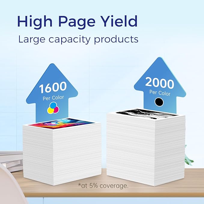 - HIGH PAGE YIELD: The HP962xl/962 ink cartridge combo pack offers up to 2000 pages for the black 962 ink cartridge and 1600 pages for each 962xl color cartridge (cyan, magenta, yellow) at 5% coverage on A4 paper