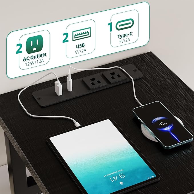 - Portable Charging Port: This dual monitor stand has a built-in 3-in-1 power outlet that includes two AC power outlets, a USB port and a Type-C port. You can connect printers, shredders, headphones, tablets and other devices to one place for easy power connection and charging