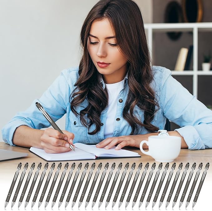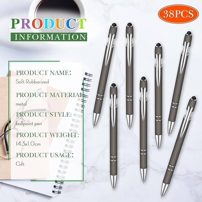 Zonon 38 Pieces Rubberized Ballpoint Pen with Stylus Tip Stylish Metal Pen Capacitive Styli with Soft Rubberized Grip, Black Ink for Most Devices(Gray)