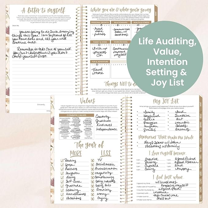 - MORE THAN JUST A PLANNER—A COMPLETE LIFE TOOL! Ideal as an ADHD planner, goal-setting journal, and productivity booster, it includes a habit tracker, personal mission statement prompt, vision board, monthly budget log, weekly scheduling templates, 16 note pages, motivational quotes, and more.