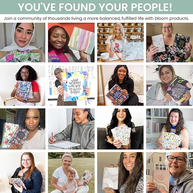 - PREMIUM FEATURES: Soft, lightweight covers made from thick cardstock with gloss film lamination, monthly tabs, deluxe 100gsm bright white bleed-resistant paper, recyclable metal lay-flat spiral binding, front and back inside storage pockets, and a FREE sticker sheet and bookmark!