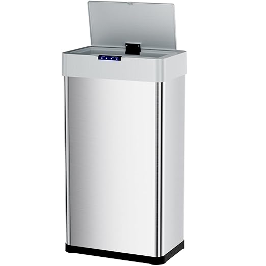 - SMART MOTION SENSOR TRASH CAN: Sensor trash can uses advanced automatic sensing technology (sensing area of up to 5.9 inches).The lid stays open with a 1s rapid response. If your hands stay around the infrared motion sensor. Lid closes after 5 seconds automatically if none movement is detected by sensor. Those with mobility problems may find the automatic feature more convenient than foot operated models.