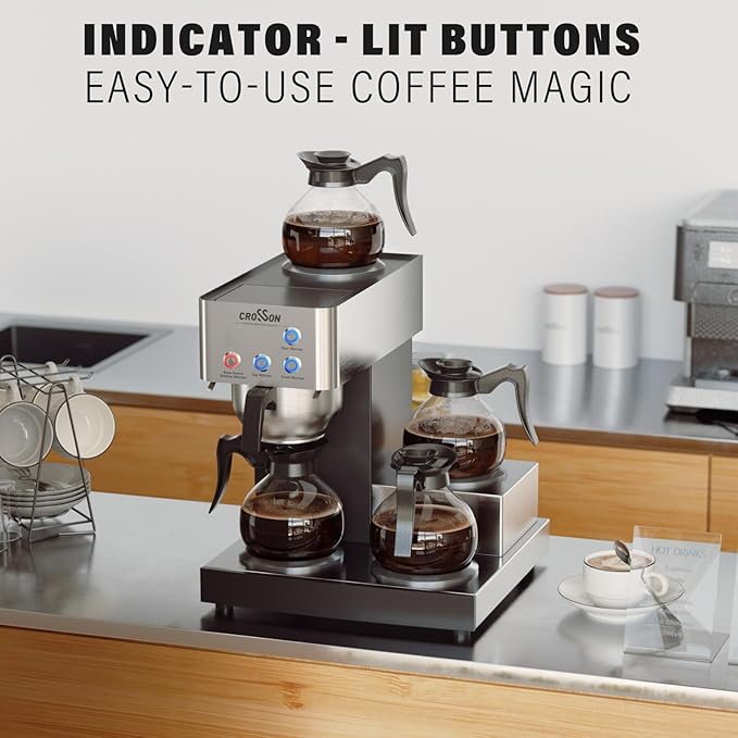 crosson 12 Cup Commercial Coffee Brewer with 4 Warmers & 4 Glass Decanter,Pour Over Drip Coffee Maker with Stainless Steel Housing and 304 SS Funnel