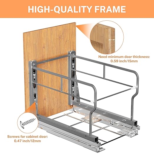 - Premiun Material: Trash cabinet pull out is made of high-quality carbon steel with a powder-coated surface for durability and rust resistance, allowing you to clean it easily with a cloth. The under sink trash can pull out has an enhanced weight capacity, capable of withstanding up to 100 pounds, so there's no need to worry about bending the slides.