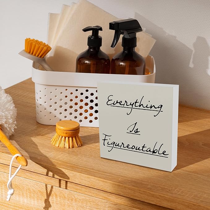 Inspirational Office Decor, Every Thing is Figure Outable Motivational Office Accessories Wooden Box Sign, Positive Gifts for Women, Men Wall Desk Shelf Tabletop Decoration 5x5In