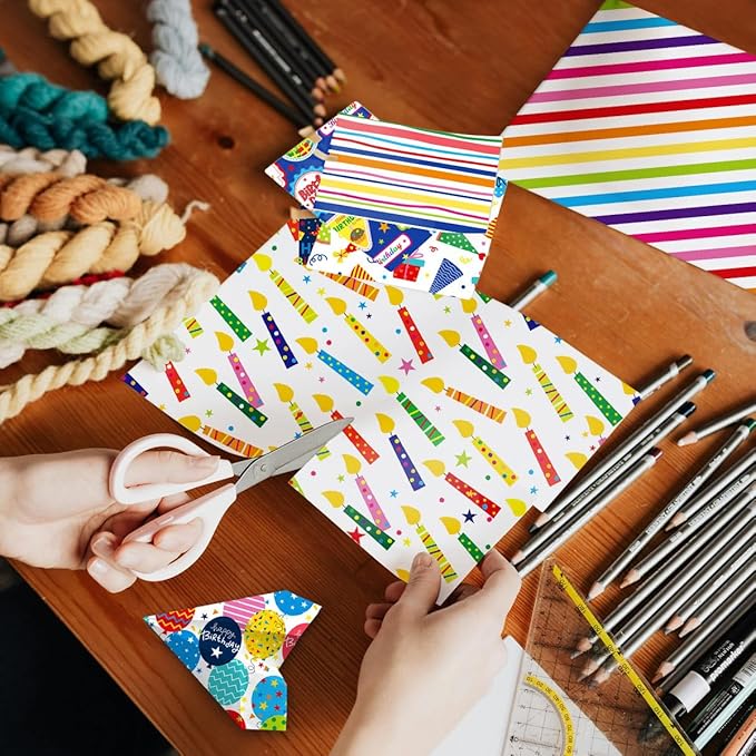 - LARGE PAPER PACK - 24 sheets happy birthday themed pattern paper in 12 different designs, each design has 2 sheets, sufficient to meet your needs for art crafts, and you can share with your friends to DIY, full of fun.