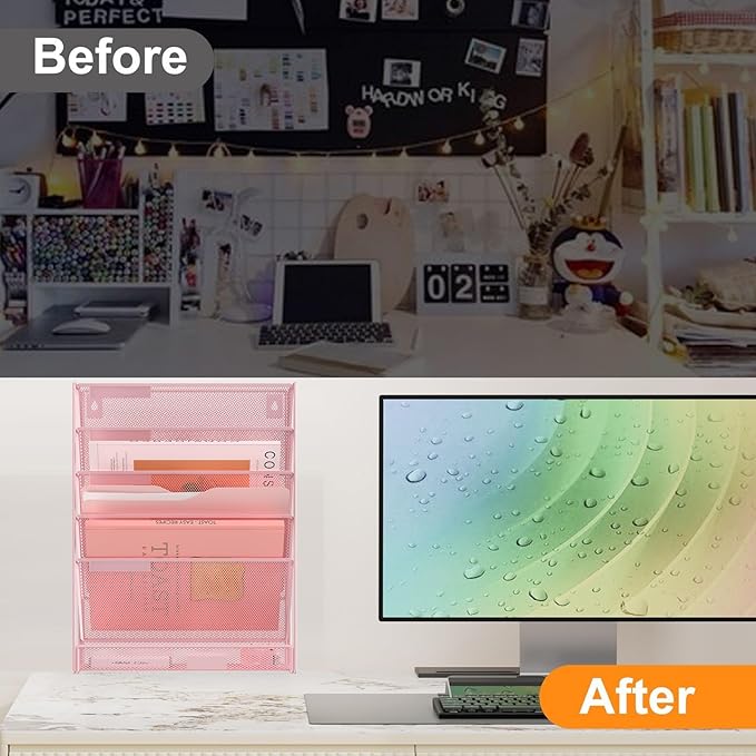 Kuntine.B Wall File Organizer Office Hanging Magazine Holder Wall File Organizer for Office Home (Pink, 6 Tier)