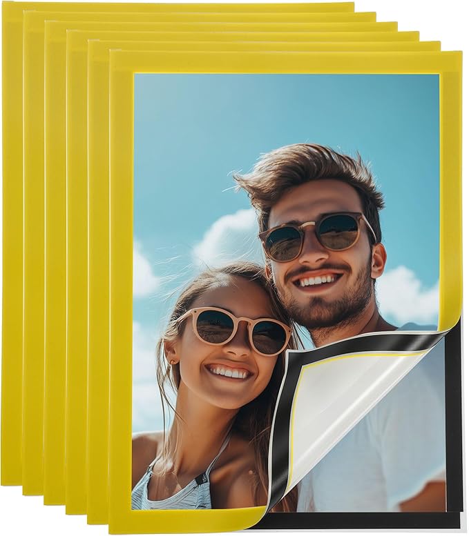 uxcell 6 Pcs Magnetic Sign Holder, 8.3" x 11.7" Self-Adhesive Magnetic Wall Signs Holder Magnetic Picture Frame Document Holder for Home Office Wall Window Displays, Yellow