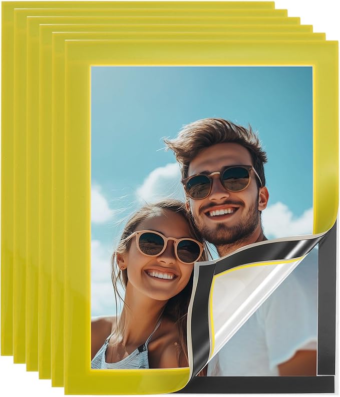 uxcell 6 Pcs Magnetic Sign Holder, 5" x 7" Self-Adhesive Magnetic Wall Signs Holder Magnetic Picture Frame Document Holder for Home Office Wall Window Displays, Yellow