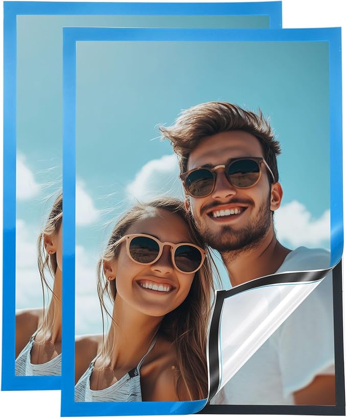 uxcell 2 Pcs Magnetic Sign Holder, 11.7" x 16.5" Self-Adhesive Magnetic Wall Signs Holder Magnetic Picture Frame Document Holder for Home Office Wall Window Displays, Sky Blue