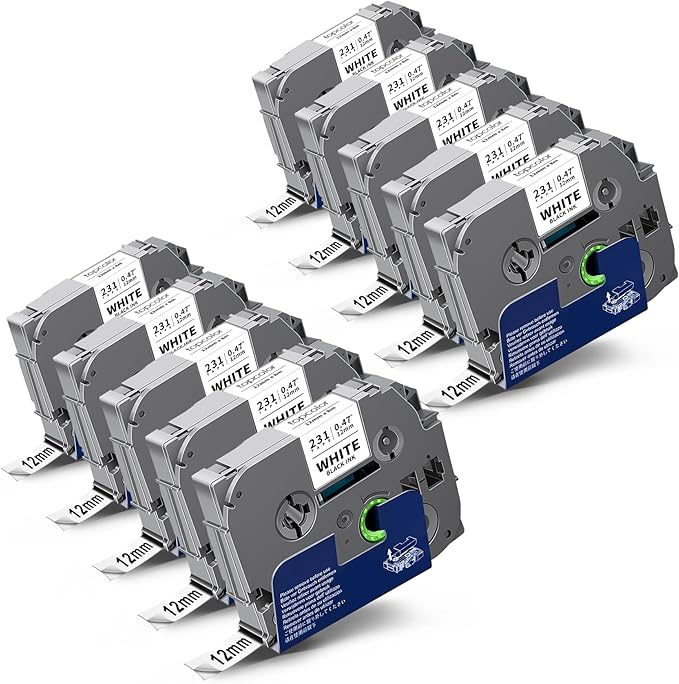 10-Pack 12 mm 0.47" Black on White Compatible for Brother Tze-231 Tz231 P Touch Label Tape 12mm 0.47" Laminated White Tze Tz Tape 1/2" for PT-D210 PT-D202 PT-D220 PTD410 PTD600 PTD400 PT2430