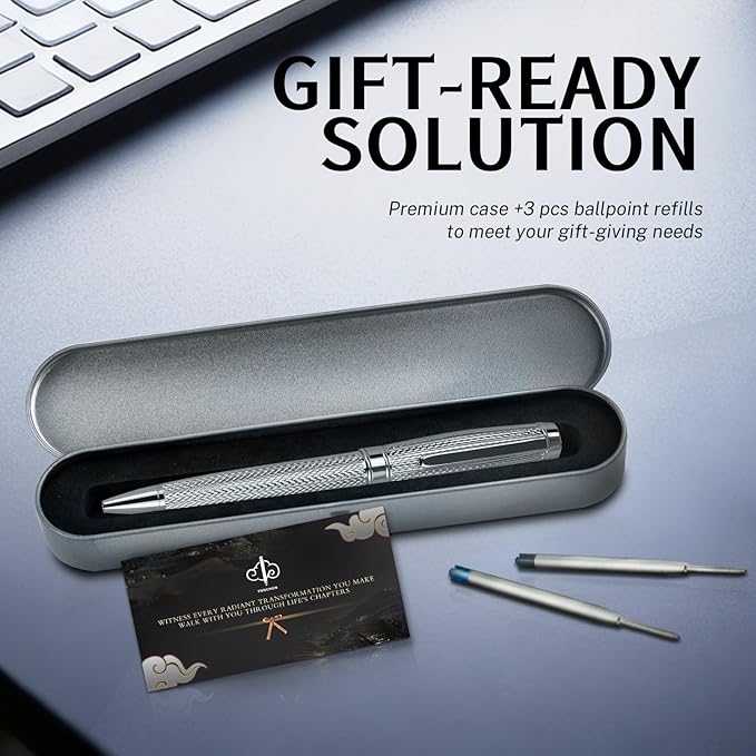 - 【Premium Metal】Crafted with premium metal forging, the silver pen deliver unmatched durability—resisting deformation, fading, and everyday wear. The reinforced anti-drop and pressure-resistant design means fewer replacements and more reliability