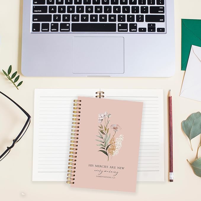 BearCake Orange Bible Christian Journals Floral Notebooks for Women Note Taking,Prayer Journal for Women, His Mercies are New Every Morning,Bible Study Journal for Women 5.5x8.3