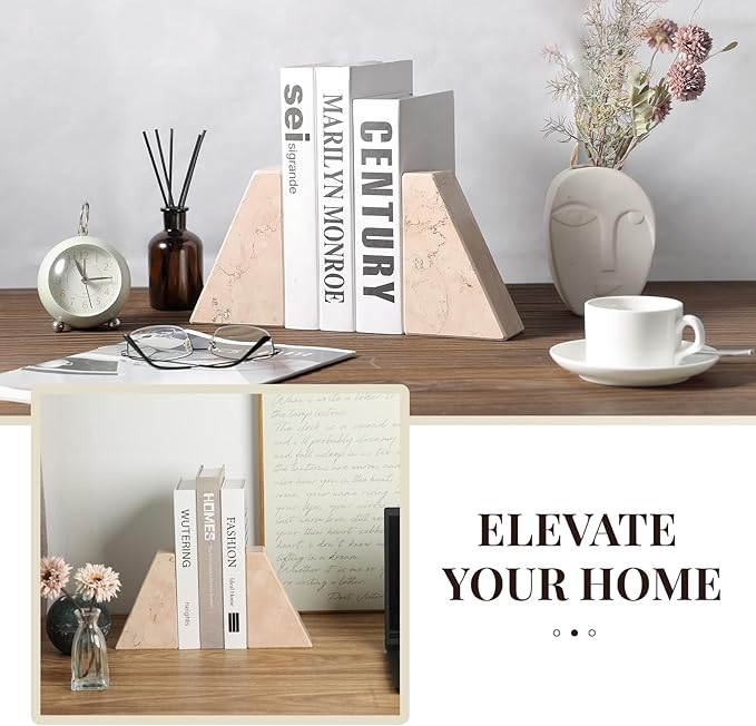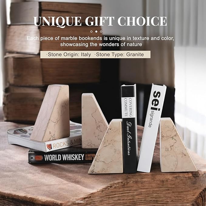 - 【Luxury & Elegant】Koville book ends are made of natural granite from Italy. Each bookend has its own unique textures and colors, no two pieces are exactly the same, revealing the wonders of nature and will be an elegant addition to your tabletop decor