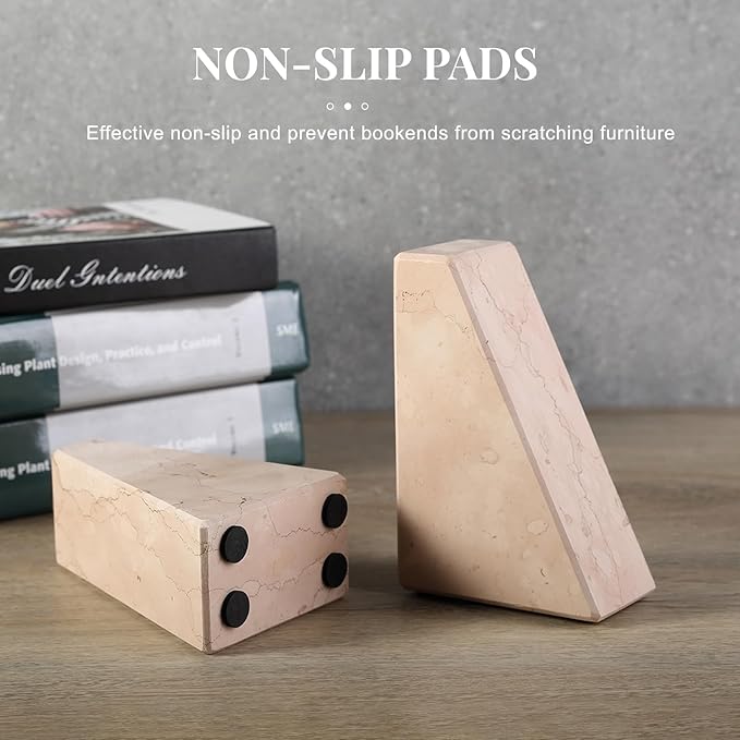 Koville Natural Stone Bookends for Shelves, Granite Book Ends for Heavy Books, Non-Slip Heavy Duty Book Stopper for CD/Movies, Decorative Bookend for Bookshelf Table Home Decor(Pink)