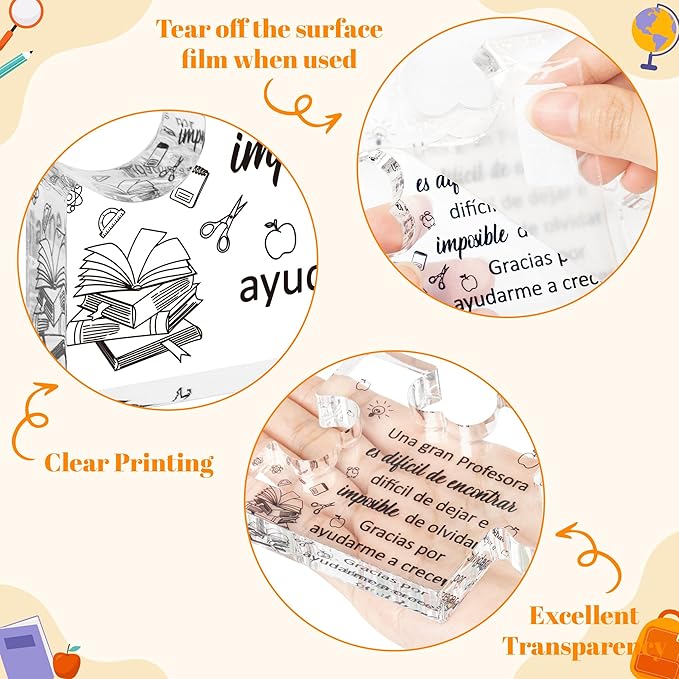- SPANISH THANK YOU TEACHER TEXT: Acrylic surface printed with Spanish text expressing gratitude to the teacher, conveying respect and gratitude to the teacher, a perfect gift for teachers