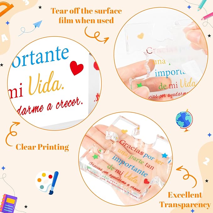 Yopyame Spanish Teacher Appreciation Gifts - Regalos para Maestra Acrylic Gift Thank You Teachers Engraved Acrylic Puzzle Plaque End of Year Graduation Christmas Birthday Thanksgiving Gift for Teacher