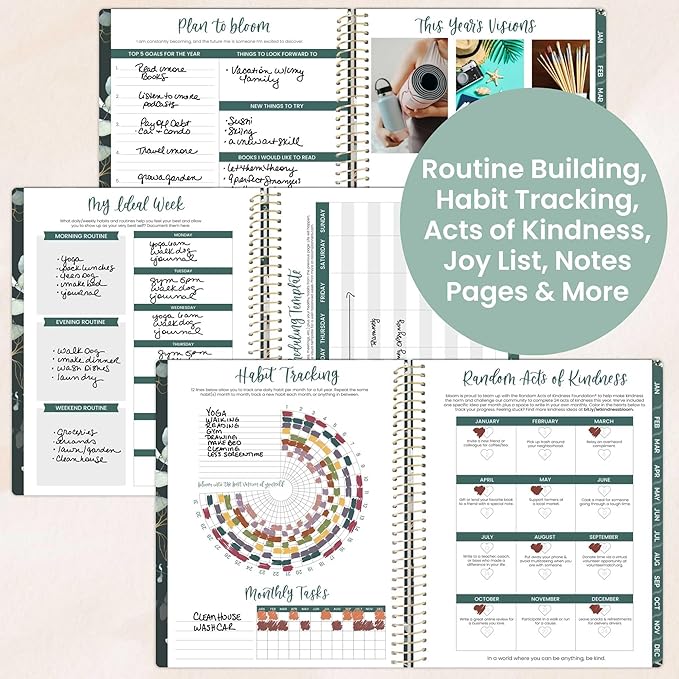 - EXTRA TOOLS FOR PERSONAL GROWTH: This office essential comes packed with life coaching worksheets and productivity tools to keep you motivated: a personal mission statement prompt, yearly goal-setting page, weekly scheduling template, habit tracker, vision board, monthly budget log, 12 note pages, inspirational quotes, monthly challenges, and more.