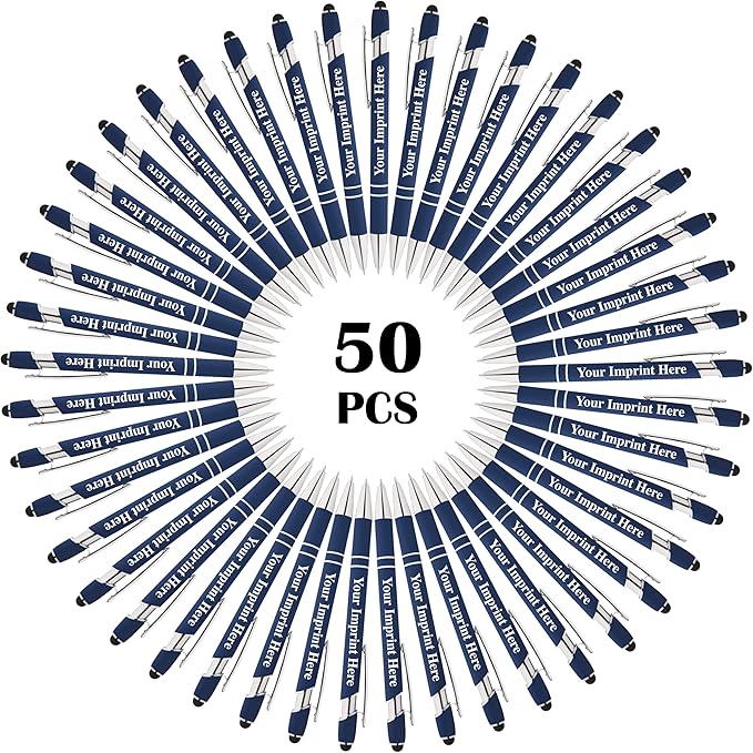 Up to 500 Pcs Custom Pens Bulk | Rainbow of Colors | Soft-Touch Metal Black Ink Personalized with Name or Message (Dark Blue, 50)