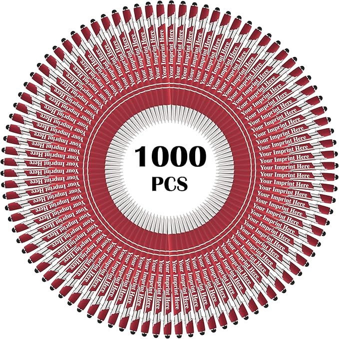 Up to 500 Pcs Custom Pens Bulk | Rainbow of Colors | Soft-Touch Metal Black Ink Personalized with Name or Message (Red, 1000 pcs)