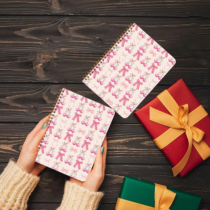 2 PCs Pink Bow Cherry Spiral Notebook Trendy Preppy Journaling Notebooks Cute Coquette Gifts for Women Teen Girls Note Books Journals for Writing Hardcover Notebook Office Classroom Supplies