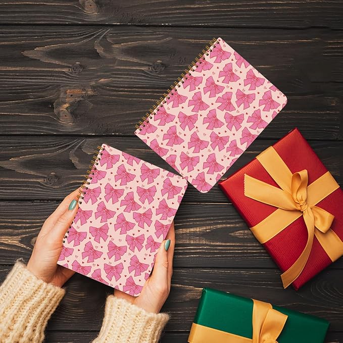 2 PCs Pink Bow Spiral Notebook Trendy Preppy Journaling Notebooks Cute Aesthetic Design Gifts for Women Teen Girls Note Books Journals for Writing Hardcover Notebook Office Classroom Supplies