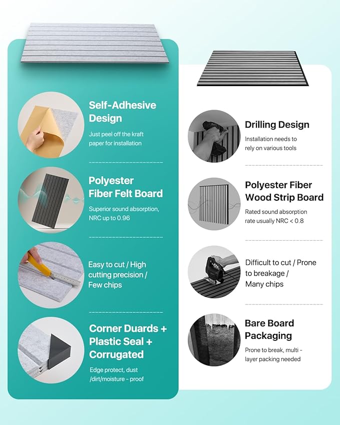 - Sound Absorption: The 0.35-inch thick felt panels can absorb up to 35% of sound waves, effectively reducing indoor echoes and background noise; create a quieter environment for home offices, study rooms, recording studios or classrooms to help improve concentration