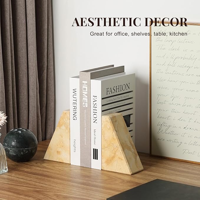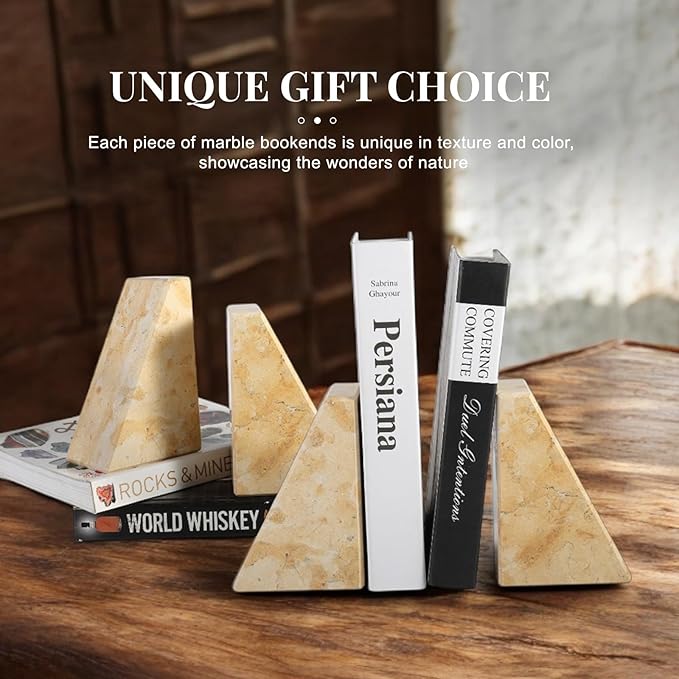 - 【Luxury & Elegant】Koville book ends are made of 100% natural solid marble. Each bookend has its own unique textures and colors, no two pieces are exactly the same, revealing the wonders of nature and will be an elegant addition to your tabletop decor