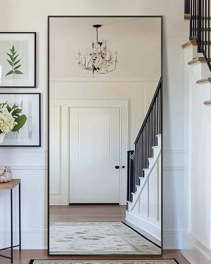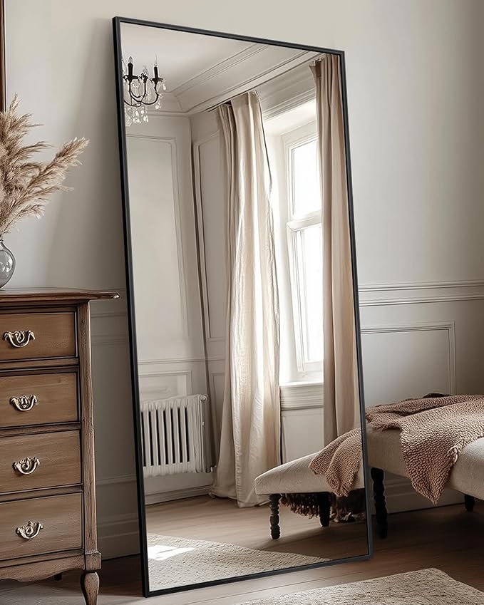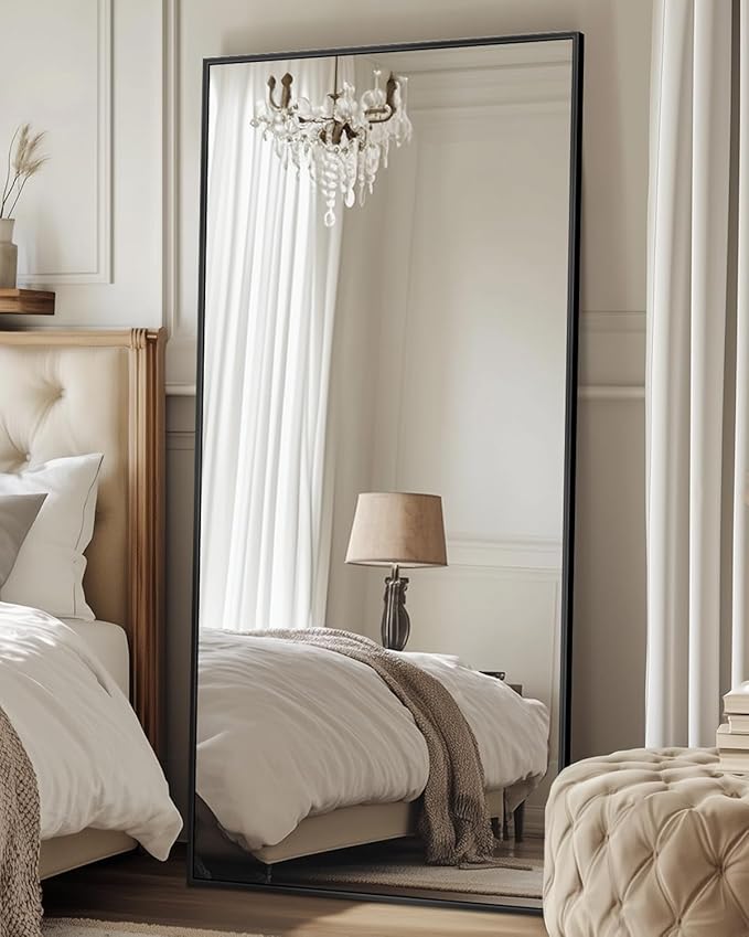 Antok Full Length Mirror, 58"x21" Floor Mirror, Floor Standing Freestanding Full Body Mirror with Stand for Bedroom, Hanging Mounted for Living Room Cloakroom, Black