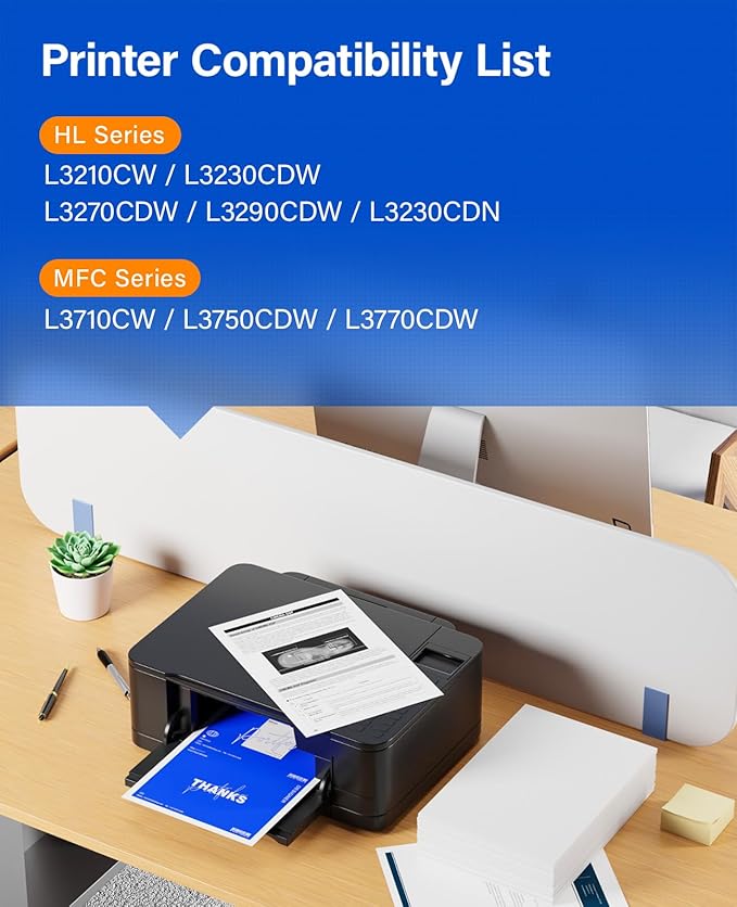- Compatible Printer: Compatible with Brother HL-L3210CW, HL-L3230CDW, HL-L3270CDW, HL-L3290CDW, HL-L3230CDN, MFC-L3710CW, MFC-L3750CDW, MFC-L3770CDW (Please check that your printer model matches the printer model of this toner cartridge before placing an order)