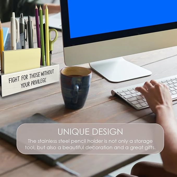 Fight for Those Without Your Privilege Pen Holder, Equality Gifts, Female Empowerment Desk Decor Stainless Steel Pencil Holders WCC63