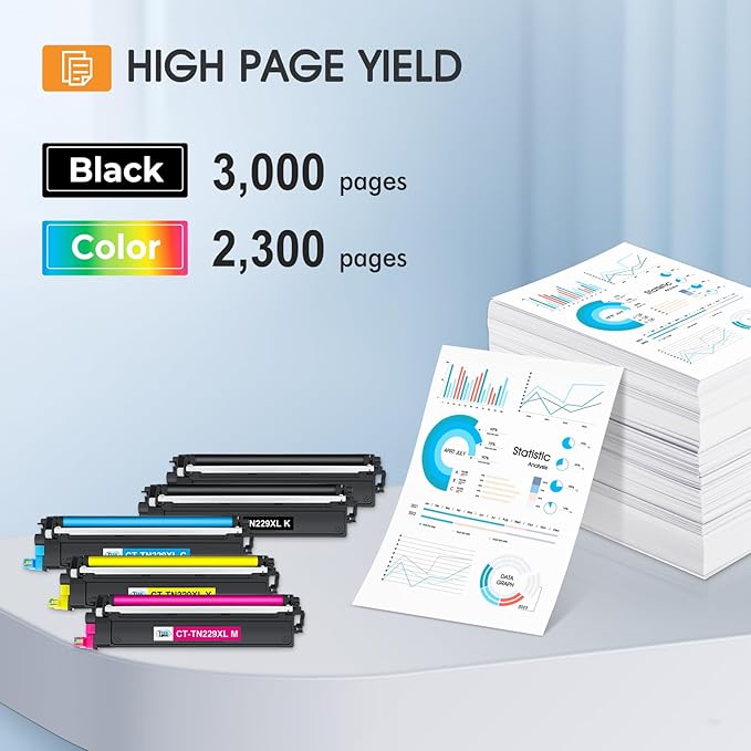 - Page Yield: 3,000 pages for TN229XL black toner and 2,300 pages for each TN229XL color toner (Letter/A4, at 5% coverage)