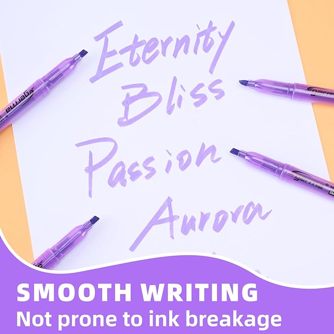 - LONG-LASTING: The highlighters purple with good airtightness prevents ink from drying,the ink is abundant and the durable chisel tip ensures the highlighter can be used for a long time.